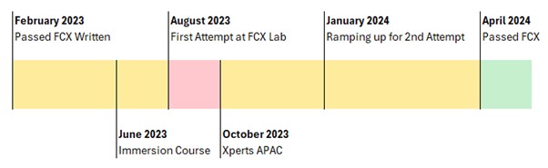 This post is the first part of the final post in my series about my FCX Journey. It picks up from when I passed the FCX written exam and goes through my prep for the lab, plus my experience for first attempt. The aim is to provide as much advice as I can for prospective FCX candidates within the bounds of the NDA.