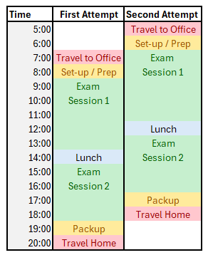 The exam environment is stressful and draining. It is not a normal 11-hour workday.