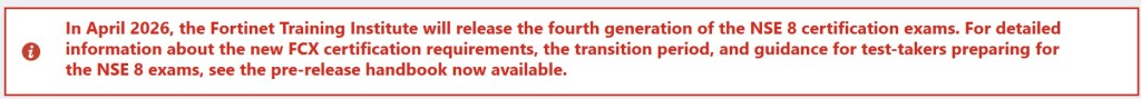 Its worth noting that the current NSE8 written exam (NSE8_812) will be discontinued as a prerequisite for initial certification. If you pass the NSE8_812 exam you need to pass the current practical exam while its still available, otherwise you are starting over again.